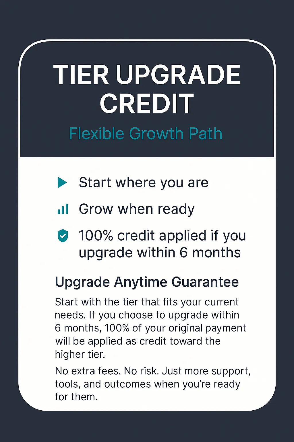 Tailored for senior leaders who need high-touch strategic support. In addition to full access to the Blueprint, this offering includes personalized coaching sessions, stakeholder alignment support, and optional innovation roadmap development. Built to deliver measurable outcomes and executive-level transformation.